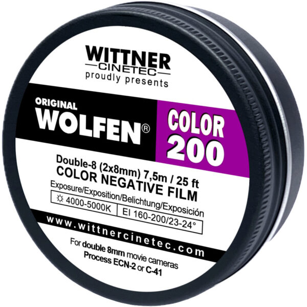 Dit is een nieuw product gemaakt door FilmoTec GmbH, Wolfen in samenwerking met Wittner Cinetec uit Duitsland. Ofwel een product “Made in Germany”. Het betreft een kleurnegatief film op acetaat-basis in het dubbel8 film formaat van 200 ISO. Deze film is niet voorzien van een RemJet en is daardoor makkelijk eventueel zelf thuis te ontwikkelen. En deze film is zowel in ECN-2 alsook in C-41 chemie te ontwikkelen.